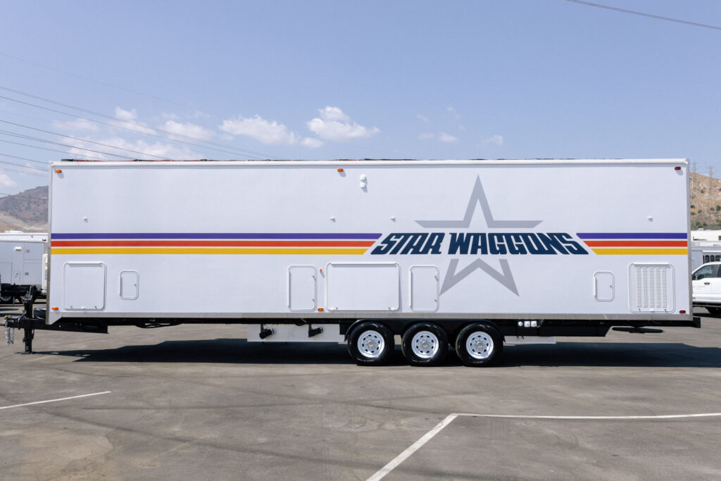 The new luxury cast trailers are all fully electric and solar-powered with access to Quixote’s Sustainable Fleet dashboard. This on-demand tool provides real-time remote monitoring, management and data analytics giving transportation and sustainability teams essential tools and insights for eco-conscious operations and reporting. Additionally, they are among the first to include Quixote’s new Power Sharing Capability, which enables the connection of solar all-electric trailers to share power from unit to unit. The new Star Waggons are also equipped with our new Smart Shoreline feature, which allows them to preferentially use solar power rather than draw power from generators unless necessary.