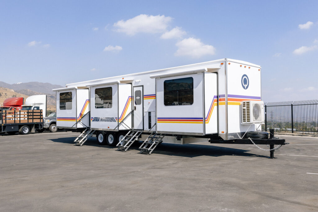 The new luxury cast trailers are all fully electric and solar-powered with access to Quixote’s Sustainable Fleet dashboard. This on-demand tool provides real-time remote monitoring, management and data analytics giving transportation and sustainability teams essential tools and insights for eco-conscious operations and reporting. Additionally, they are among the first to include Quixote’s new Power Sharing Capability, which enables the connection of solar all-electric trailers to share power from unit to unit. The new Star Waggons are also equipped with our new Smart Shoreline feature, which allows them to preferentially use solar power rather than draw power from generators unless necessary.
