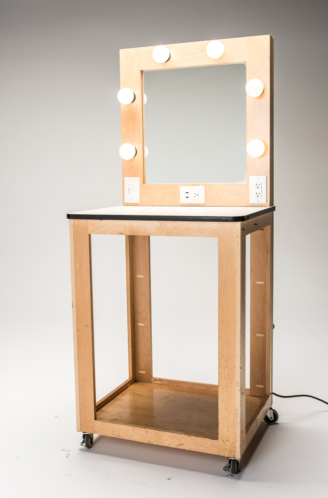 Table top makeup mirror with color changing lights (Warm to cool) Additional Info: Consider renting with a power strip, 25; ac and Director chair